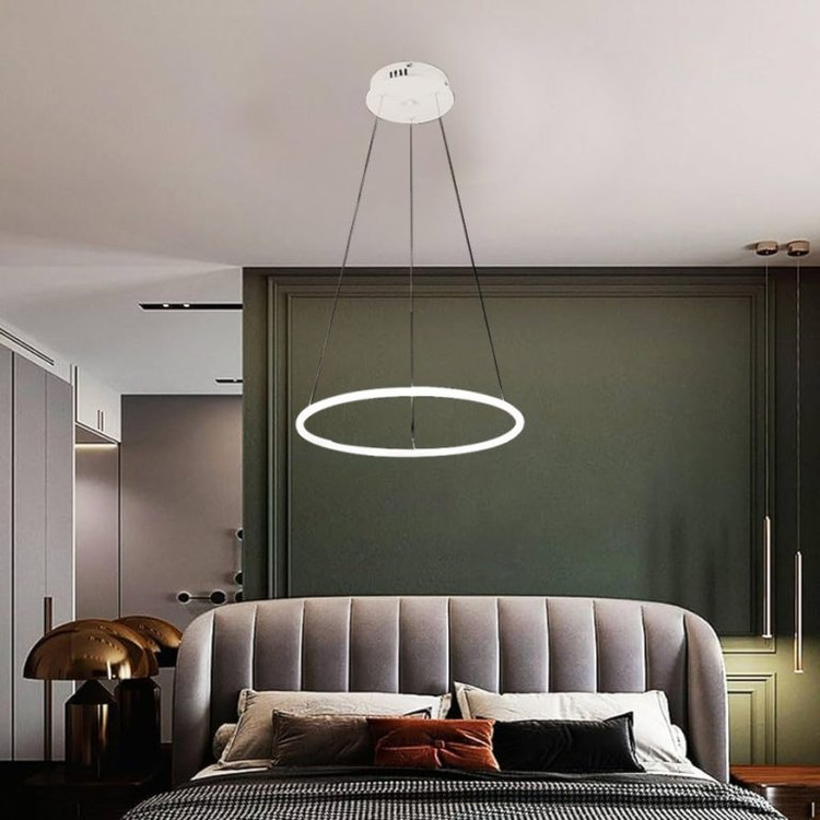 این لوستر حلقه ای مدرن مناسب برای روشنایی منازل مسکونی (جایگزین عالی به جای لوسترهای گران قیمت) و محیطهای تجاری، هتلها، فروشگاهها و موزهها، رستورانها، بیمارستان و کارخانهجات میباشد.