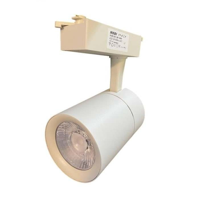 چراغ ریلی 30 وات COB مودی مدل IR-MD2130 در دو رنگ بدنه یکدست سفید و مشکی تولید میشود. چراغ 30 وات ریلی مودی با نور متمرکز و نمود رنگ بالا بهترین منبع نور برای نمایش اجناس در فروشگاه های مختلف ازجمله پوشاک، فرش و لوازم خانگی می باشد. تمرکز نور بر روی کالا ها بوسیله این چراغ باعث جلب توجه مشتریان به کالاهای ویترین می گردد. ریل و سیستم ریلی در روشنایی:سیستم ریلی روشنایی یک روش برای تامین نور در معماری می باشد. در این سیستم، منابع نور بر روی یک مسیر به هم پیوسته قرار میگیرند و عملا این مسیر علاوه بر اینکه وزن چراغ را تحمل می کند، برق مورد نیاز را نیز منتقل مینماید. تفاوت عمده این سیستم با سیم کشی مستقل هر منبع در این است که کلیه پروژکتور ها انرژی مورد نیاز خود را از ریل می گیرند و در نتیجه این سیستم قابلیت انعطاف بیشتری به نور پرداز می دهد. این روش امکان جابجایی و تغییر تمرکز نور را به کاربر میدهد. ریل های این سیستم قابلیت نصب بر روی زمین، دیوار، سقف و سایر سطوح را دارا می باشند که بسته به کاربرد می توان نور را از زوایای مختلف به سطح کار رسانید. همچنین سیستم ریلی در جاهایی که سقف بلند دارد توسط میله از سقف آویزان میشود. چراغ ریلی 30 وات COB مودی یک محصول با طراحی منحصر بفرد می باشد. هریک از بخشهای این پروژکتور ریلی با وسواس و پس از بررسی های فراوان انتخاب گردیده است. در زیر به جزئیات هر بخش از چراغ ریلی مودی می پردازیم: