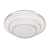 چراغ سقفی98وات گرد کریستالی یک محصول لوکس و با طراحی بسیار زیبا جلوه خاصی به دکوراسیون منزل شما می بخشد . این محصول دارای بدنه فلزی بوده و نصب آن بسیار سریع و آسان می باشد . این چراغ سقفی کریستالی با نور سه رنگ تولید میشود که با هربار خاموش و روشن کردن کلید ، نور آن بین رنگهای آفتابی ، سفید ، یخی(طبیعی) تغییر میکند و توان روشنایی آن در هر نور به ترتیب (49w) ، (49w) ، (98w) است که توان بالایی برای روشنایی اماکن مختلف محسوب میشود . از مزایای این محصول نصب آسان بدون نیاز به تغییر در ساختار محل نصب (بدون برش) میباشد. بهرهنوری بالا و طول عمر بسیار زیاد از مزایای دیگر آن و راهکاری کارآمد برای افزایش بهرهوری سیستمهای روشنایی است.