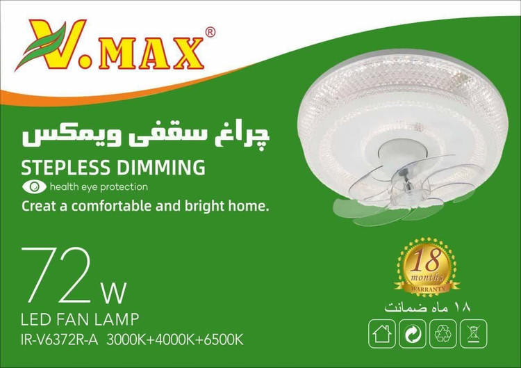 چراغ سقفی72وات پنکه دار، یک محصول لوکس و با طراحی بسیار زیبا جلوه خاصی به دکوراسیون منزل شما می بخشد . این محصول دارای بدنه فلزی بوده و نصب آن بسیار سریع و آسان می باشد . این چراغ سقفی کریستالی با نور سه رنگ تولید میشود که با هربار خاموش و روشن کردن کلید ، نور آن بین رنگهای آفتابی ، سفید ، یخی(طبیعی) تغییر میکند و توان روشنایی آن در هر نور به ترتیب (36w) ، (36w) ، (72w) است که توان بالایی برای روشنایی اماکن مختلف محسوب میشود . از مزایای این محصول نصب آسان بدون نیاز به تغییر در ساختار محل نصب (بدون برش) میباشد. بهرهنوری بالا و طول عمر بسیار زیاد از مزایای دیگر آن و راهکاری کارآمد برای افزایش بهرهوری سیستمهای روشنایی است.