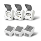 از کلید و پریز بارانی در محیط های مرطوب و محیطی که علاوه بر وجود نم ،دیوارها و کف ها برای نظافت معمولا با آب تحت فشار شسته می شود استفاده شود . کلید و پریز های بارانی معمولا دارای در پوش می باشد .