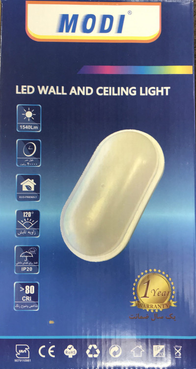 چراغ سقفی و دیواری ۲۰ وات بیضی مودی (مقاوم در برابر رطوبت)