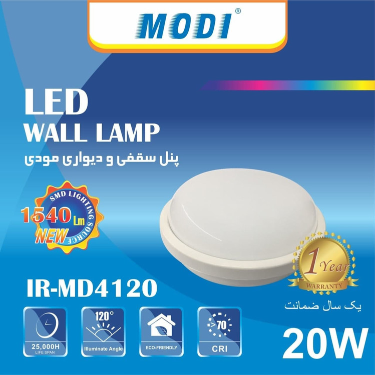 چراغ سقفی و دیواری ۲۰ وات گرد مودی (مقاوم در برابر رطوبت)