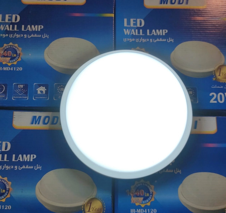 چراغ های سقفی و دیواری در ادارات ، منازل و اماکن عمومی مورد استفاده قرار می گیرند. چراغ های سقفی و لوسترها در کنار هم زیبایی و هارمونی خاصی را به محیط می بخشند. چراغ سقفی و دیواری ۲۰ وات گرد مودی در دو رنگ نور آفتابی و سفید تولید می شود. ابعاد چراغ سقفی و دیواری مودی ۶.۶*۲۲.۵ سانتی متر می باشد که به صورت روکار مورد استفاده قرار می گیرد. از ویژگی های این محصول استفاده از تکنولوژی LED ، نور مناسب ، مصرف کم و عمر بالاست.