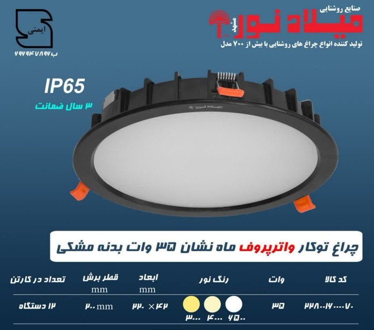 چراغ مدل ماه نشان واترپروف 35 وات ال اي دي برق مستقيم ماژول سوئيچينگ آي پي 65 |