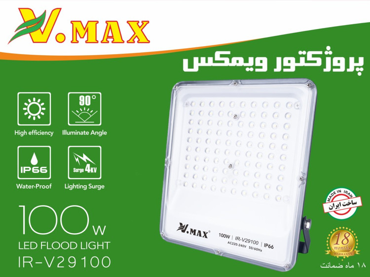 پروژکتور ۱۰۰ وات SMD ویمکس که مشاهده می کنید با کد IR-V29100 عرضه می شود و دارای توان مصرفی ۱۰۰ وات است و بسیار کم مصرف محسوب می شود . محصولات ویمکس بالاترین تنوع را در زمینه لوازم روشنایی ال ای دی در ایران دارد. این پروژکتور دارای قدرت نوردهی بسیار بالا و مصرف فوق العاده کم است. این پروژکتور پس از گذشت زمان و استفاده دچار اُفت نوری نمی شود. پروژکتور ۱۰۰ وات SMD ویمکس از عمر بسیار طولانی بهره می برد و قابلیت نصب بسیار آسانی دارد . میزان نوردهی این محصول ۹۰۰۰ لومن اندازه گیری شده است. می توان پروژکتورهای ویمکس را جایگزین مناسبی برای لامپ های خیاری و مدادی پرمصرف قدیمی قرار داد.
