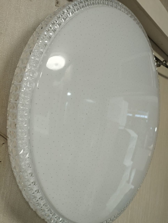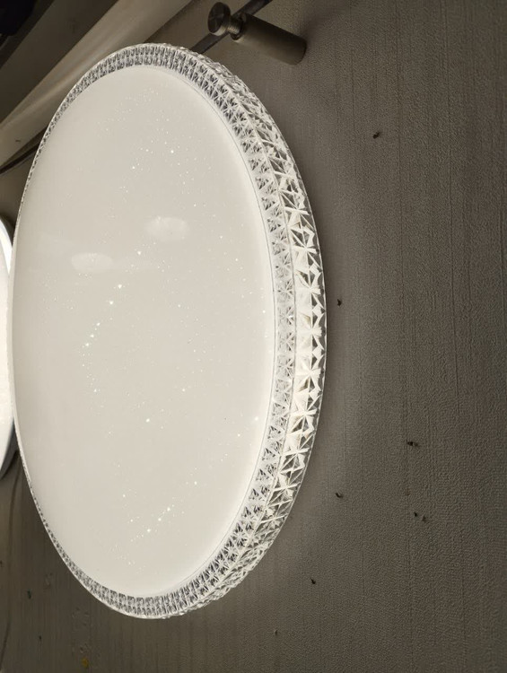چراغ سقفی 72 وات گرد کریستالی یک محصول لوکس و با طراحی بسیار زیبا جلوه خاصی به دکوراسیون منزل شما می بخشد . این محصول دارای بدنه فلزی بوده و نصب آن بسیار سریع و آسان می باشد . این چراغ سقفی کریستالی با نور سه رنگ تولید میشود که با هربار خاموش و روشن کردن کلید ، نور آن بین رنگهای آفتابی ، سفید ، یخی(طبیعی) تغییر میکند و توان روشنایی آن در هر نور به ترتیب (36w) ، (36w) ، (72w) است که توان بالایی برای روشنایی اماکن مختلف محسوب میشود . از مزایای این محصول نصب آسان بدون نیاز به تغییر در ساختار محل نصب (بدون برش) میباشد. بهرهنوری بالا و طول عمر بسیار زیاد از مزایای دیگر آن و راهکاری کارآمد برای افزایش بهرهوری سیستمهای روشنایی است.